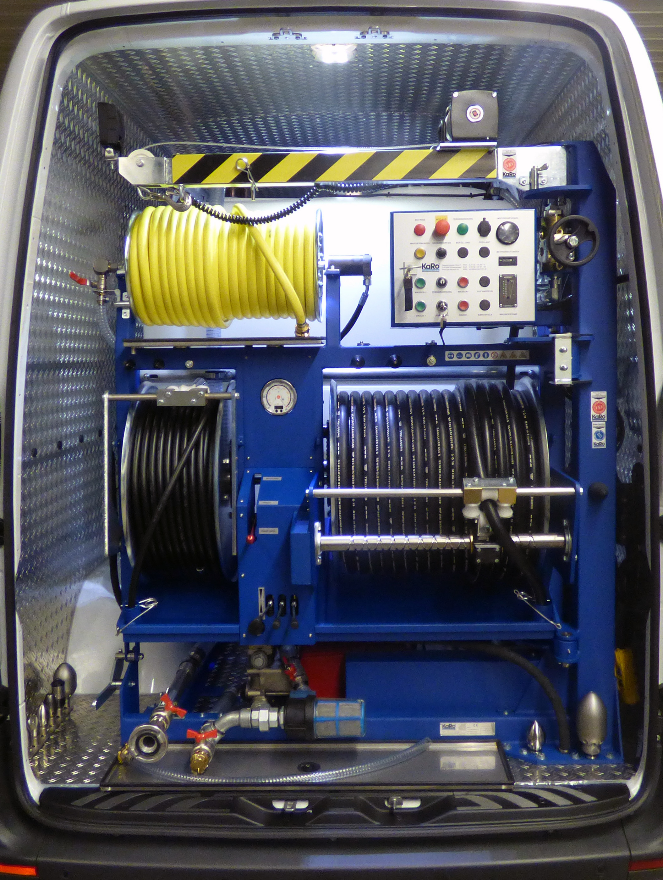 und Druckregelautomatik, mit: ca. 150 bar - 128 l/min (im Rahmen der vom Fahrzeughersteller freigegebenen Leistung) ausgestattet mit Ablaufleitung zum Händewaschen und Wasserentleerung der Pumpe sowie Frostschutz-Ansaugarmaturen. |