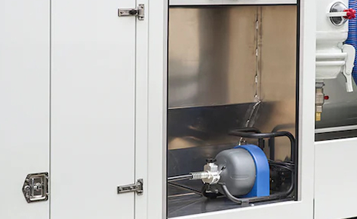 Stauraum | Beidseitige Werkzeugkästen mit Rolläden Schlauchwanne auf Beifahrerseite |