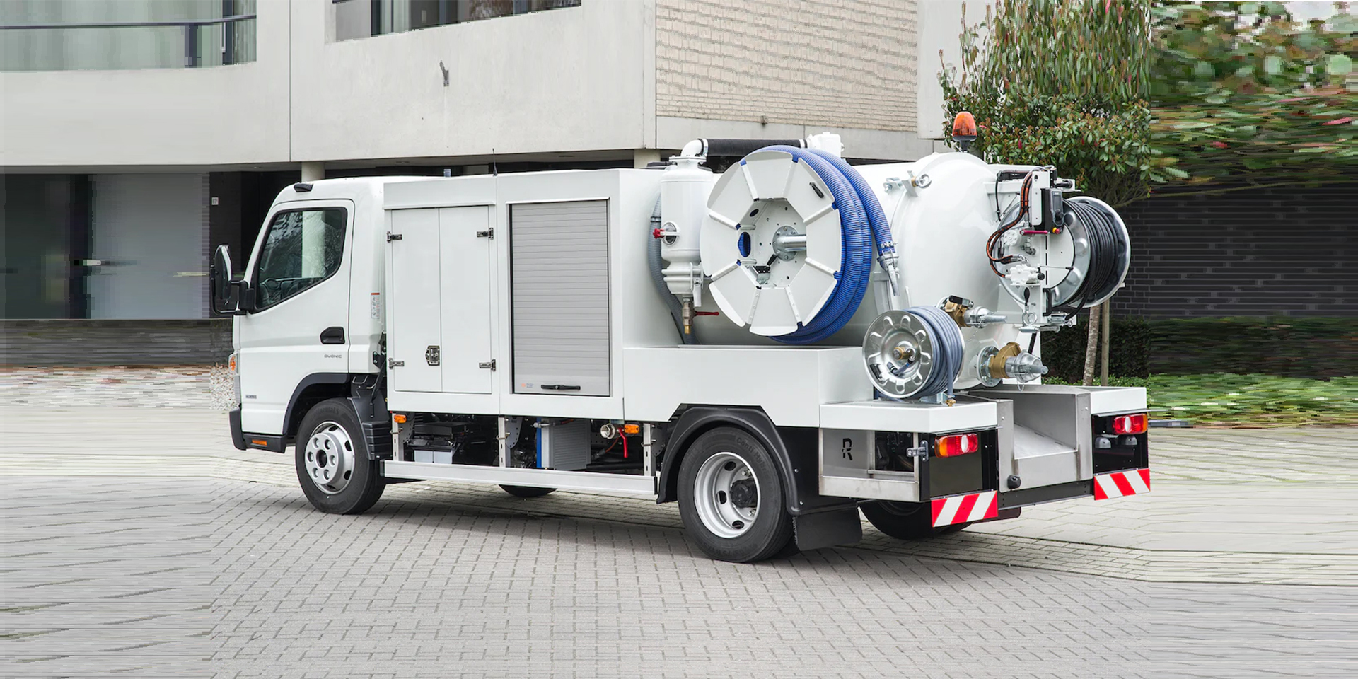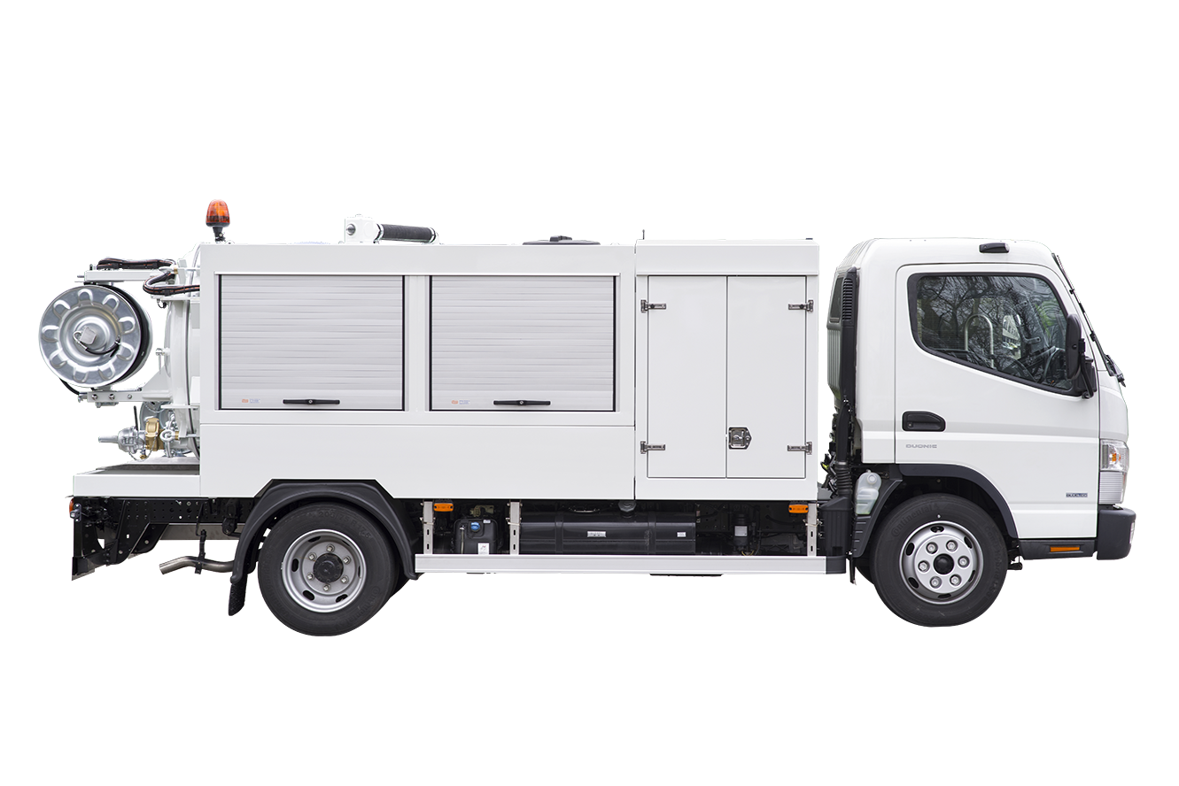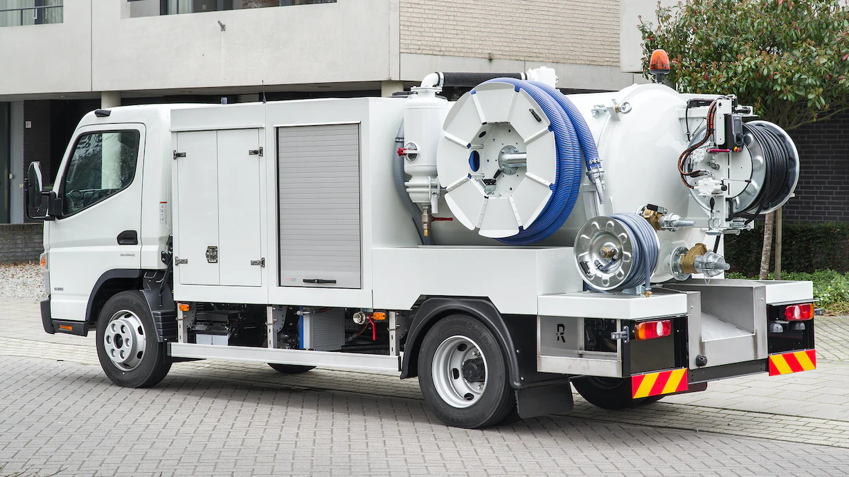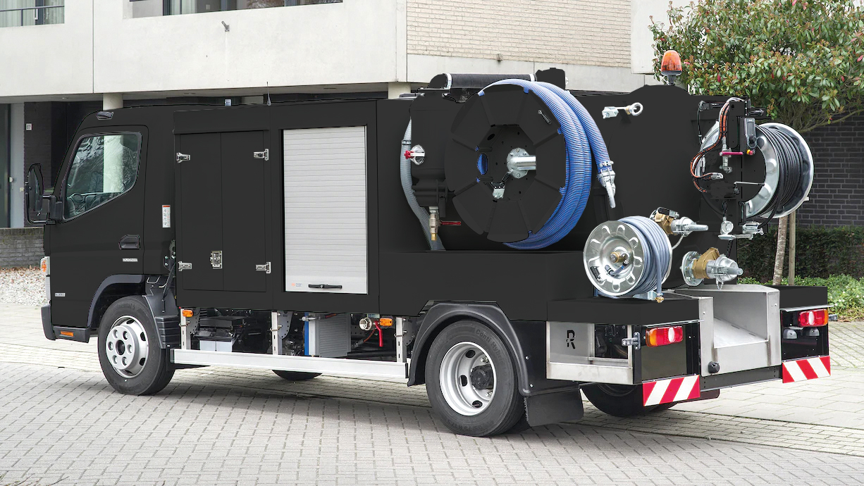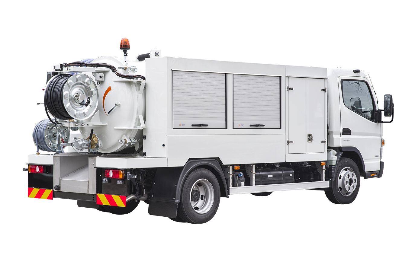 Der RioCom ist eine kompakte Saug-Spül-Kombination, die speziell für enge innerstädtische Einsatzorte entwickelt wurde. Angetrieben über das Nebengetriebe des Fuso Canter bietet er eine starke Saugleistung, flexible Spülfunktionen und eine praxisorientierte Ausstattung für effiziente Einsätze.